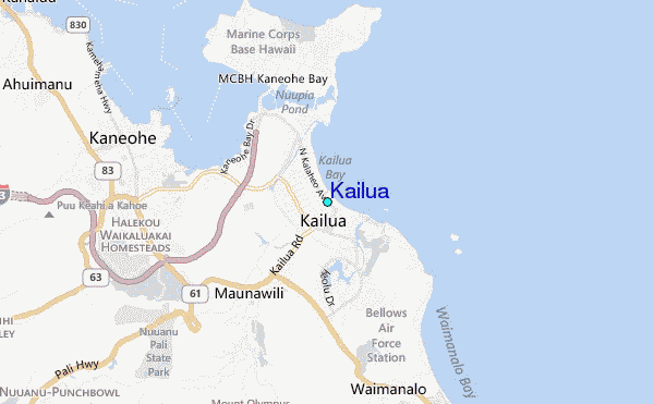 Use this relief map to navigate to tide stations, surf breaks and cities that are in the area of Kailua.