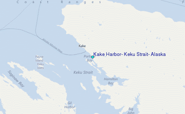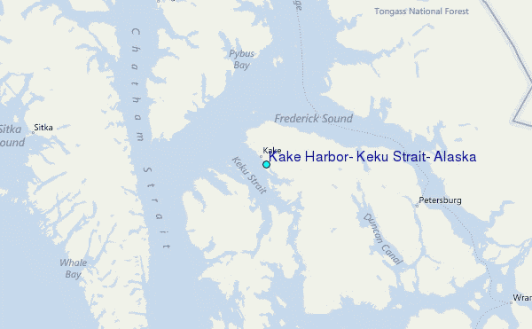 Use this relief map to navigate to tide stations, surf breaks and cities that are in the area of Kake Harbor, Keku Strait, Alaska.