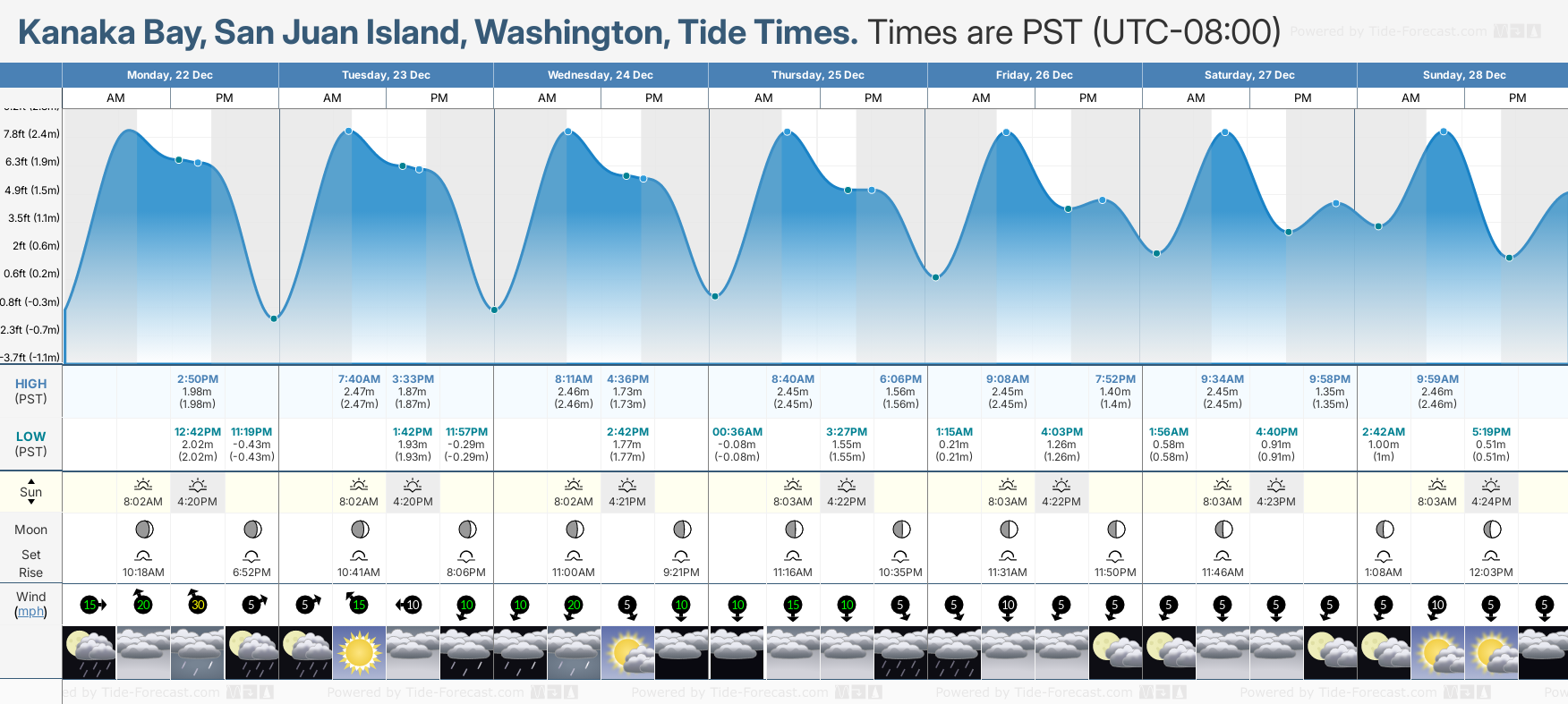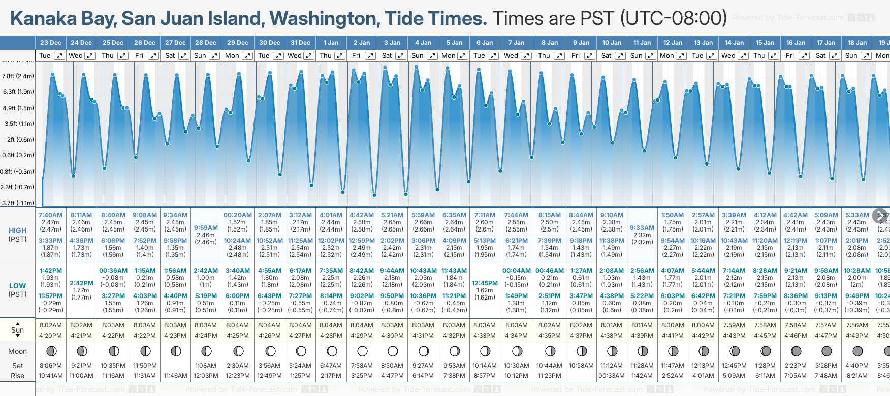 Tide Times for Kanaka Bay, San Juan Island (tomorrow): Tuesday 23 December 2025