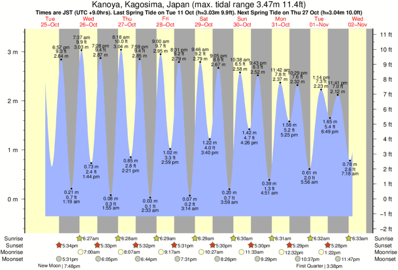 December and January Tide charts for Kanoya: The tide charts below show the height, time and date of high and low tides for the next 30 days.