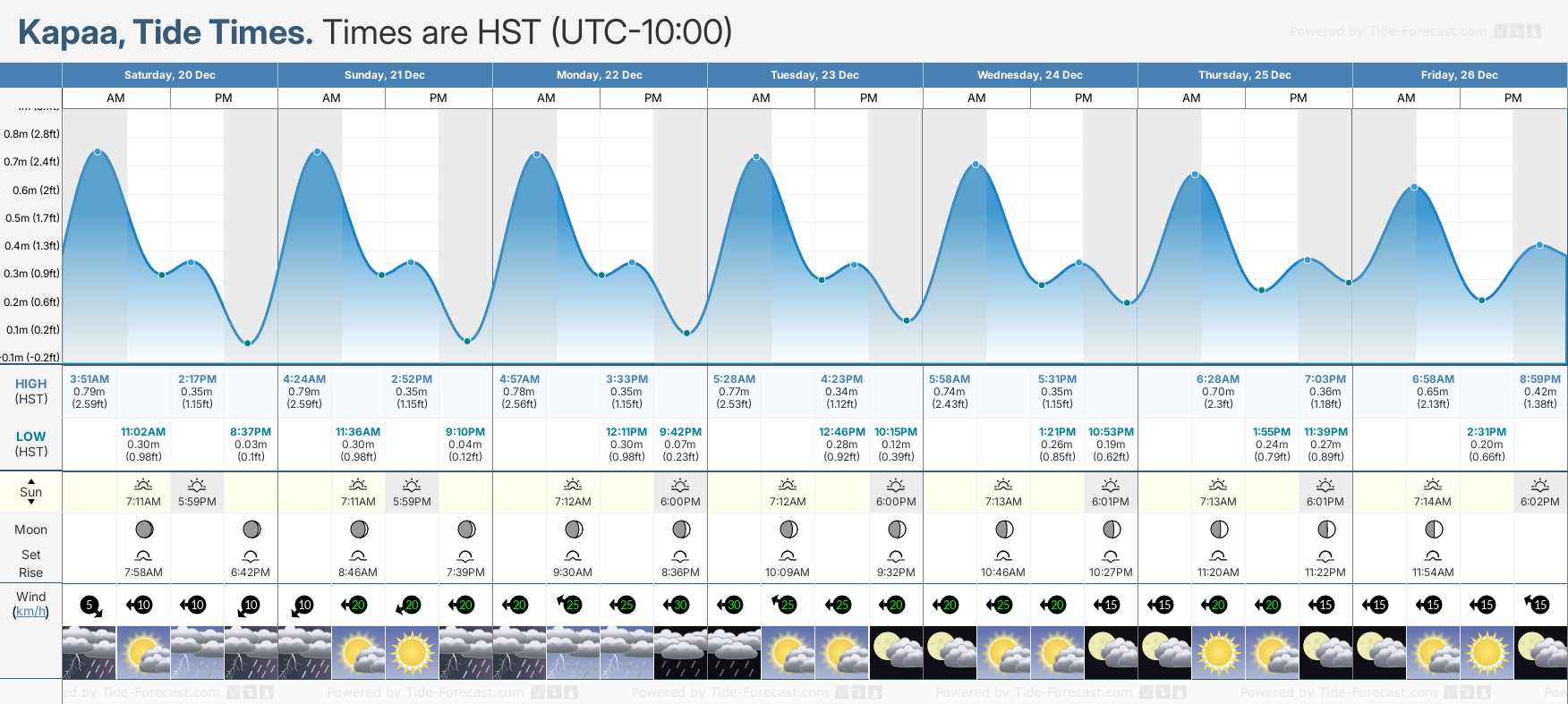 Tide Times for Kapaa (tomorrow): Monday 22 December 2025