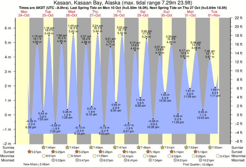 Tide chart for Kasaan, Kasaan BayShowing low and high tide times for the next 30 days at Kasaan, Kasaan Bay. Tide Times are AKST (UTC -9.0hrs).