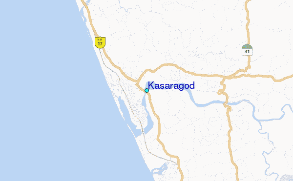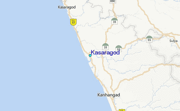 Use this relief map to navigate to tide stations, surf breaks and cities that are in the area of Kasaragod.