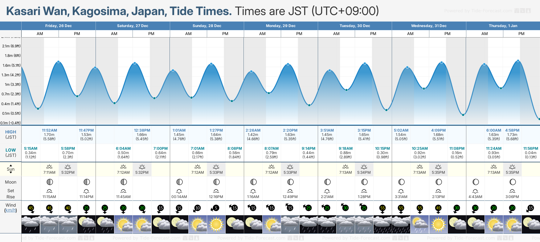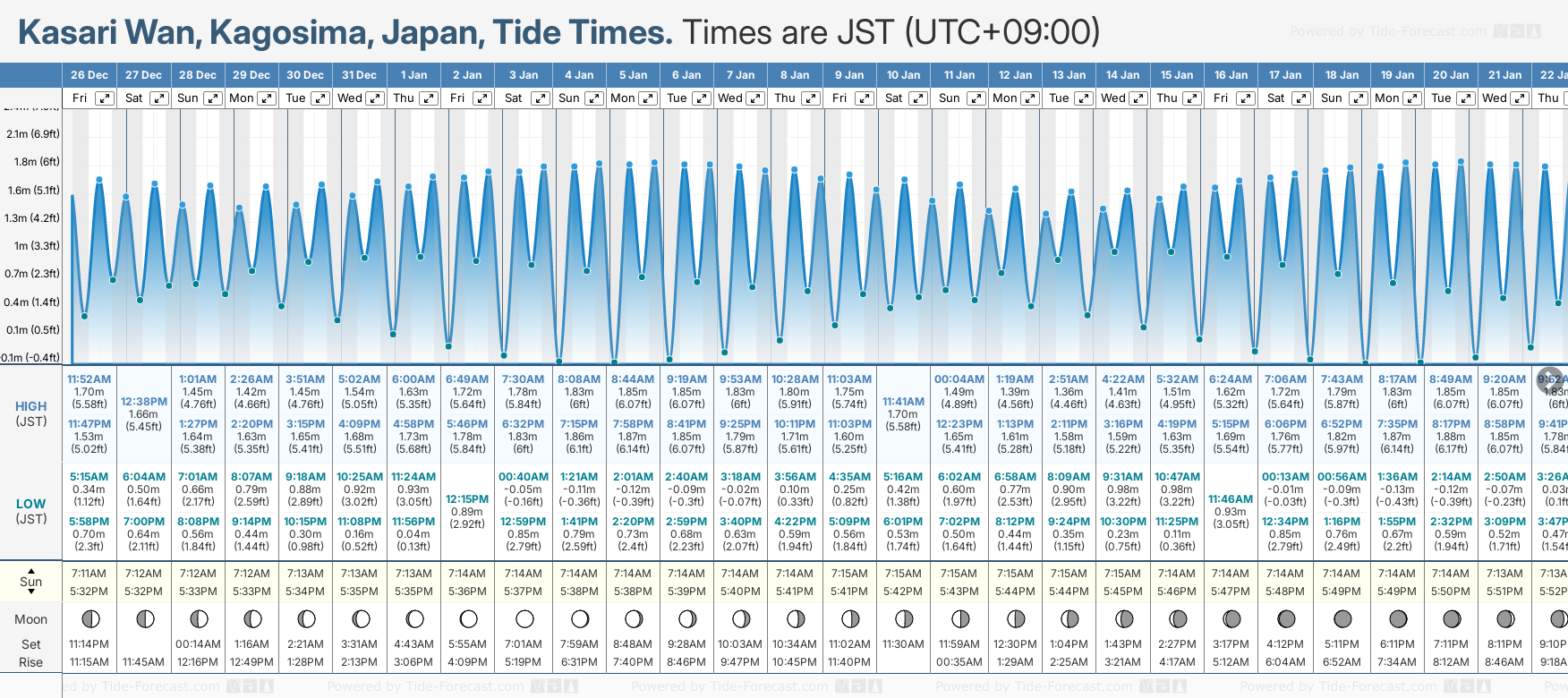 Today's tide times for Kasari Wan, Kagosima, Japan
