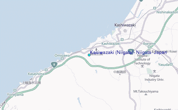 Use this relief map to navigate to tide stations, surf breaks and cities that are in the area of Kasiwazaki (Niigata), Niigata, Japan.