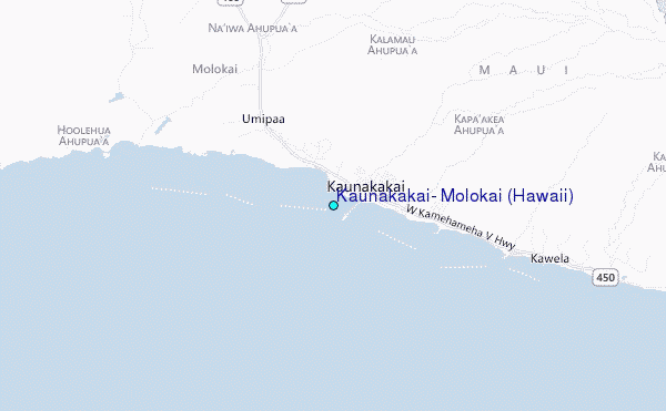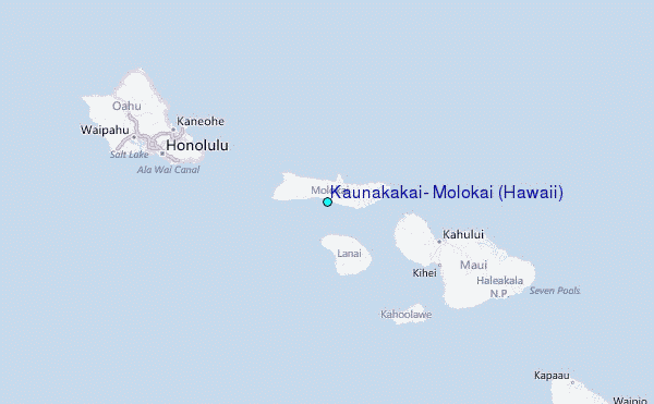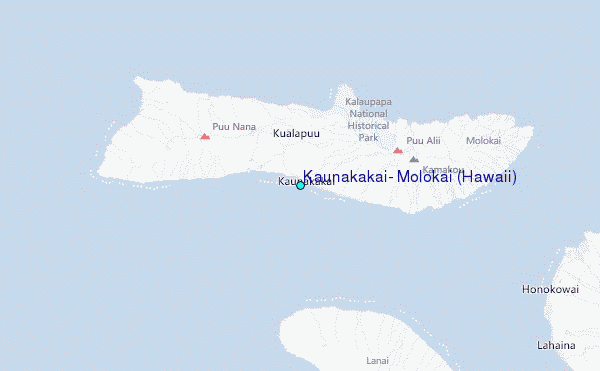Use this relief map to navigate to tide stations, surf breaks and cities that are in the area of Kaunakakai, Molokai (Hawaii).