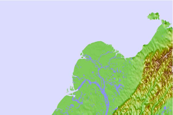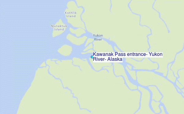 Use this relief map to navigate to tide stations, surf breaks and cities that are in the area of Kawanak Pass entrance, Yukon River, Alaska.