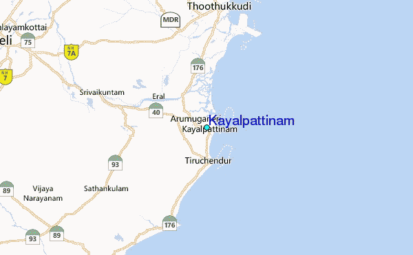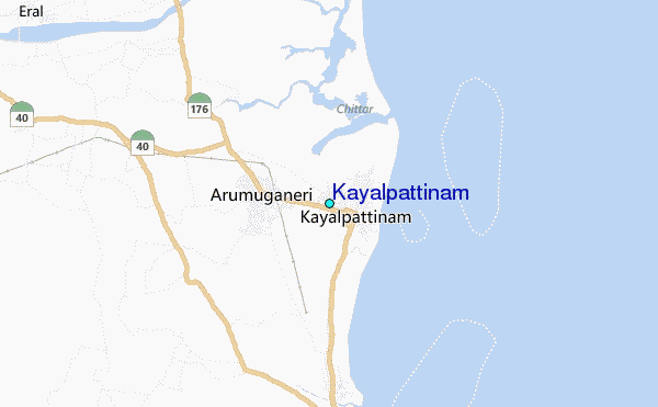 Use this relief map to navigate to tide stations, surf breaks and cities that are in the area of Kayalpattinam.
