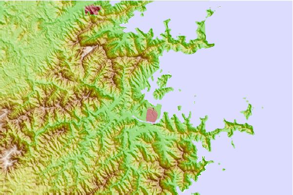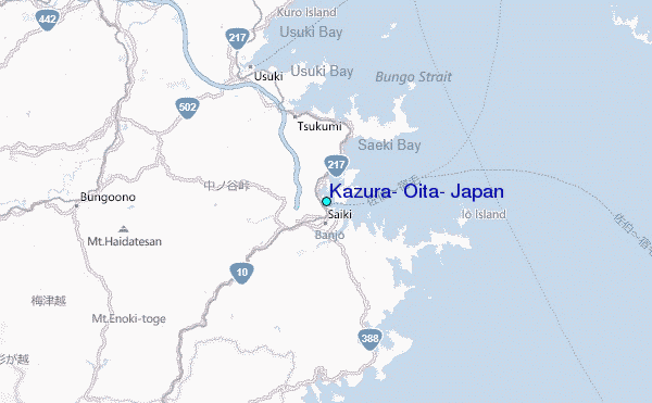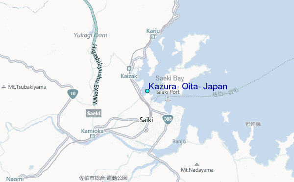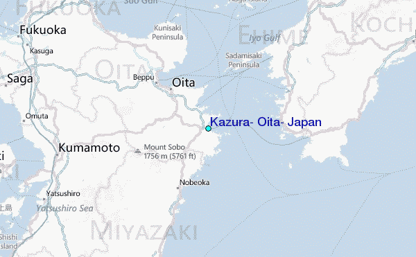 Use this relief map to navigate to tide stations, surf breaks and cities that are in the area of Kazura, Oita, Japan.