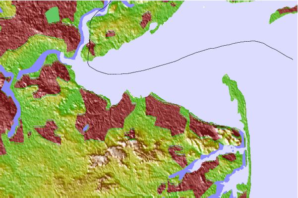 Use this relief map to navigate to tide stations, surf breaks and cities that are in the area of Keansburg, Waackaack Creek, New Jersey.