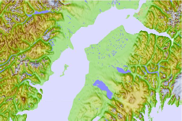 Use this relief map to navigate to tide stations, surf breaks and cities that are in the area of Kenai City Pier, Alaska.