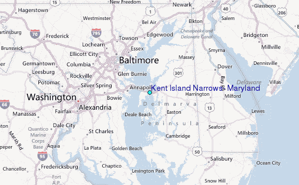 Use this relief map to navigate to tide stations, surf breaks and cities that are in the area of Kent Island Narrows, Maryland.
