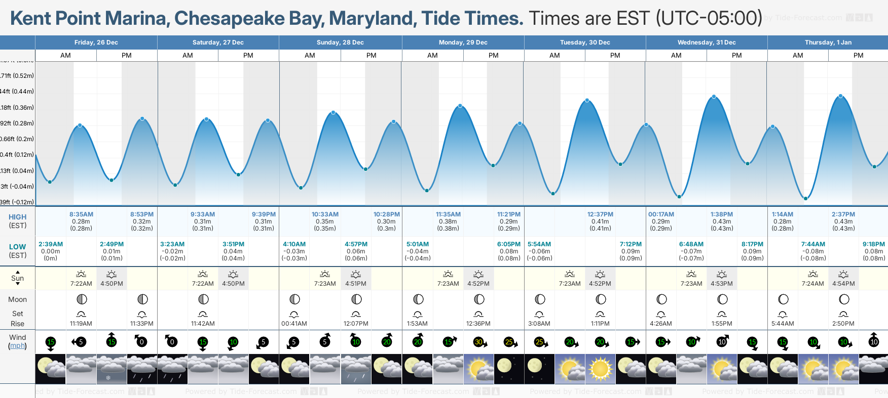 Tide Times for Kent Point Marina, Chesapeake Bay (tomorrow): Friday 26 December 2025