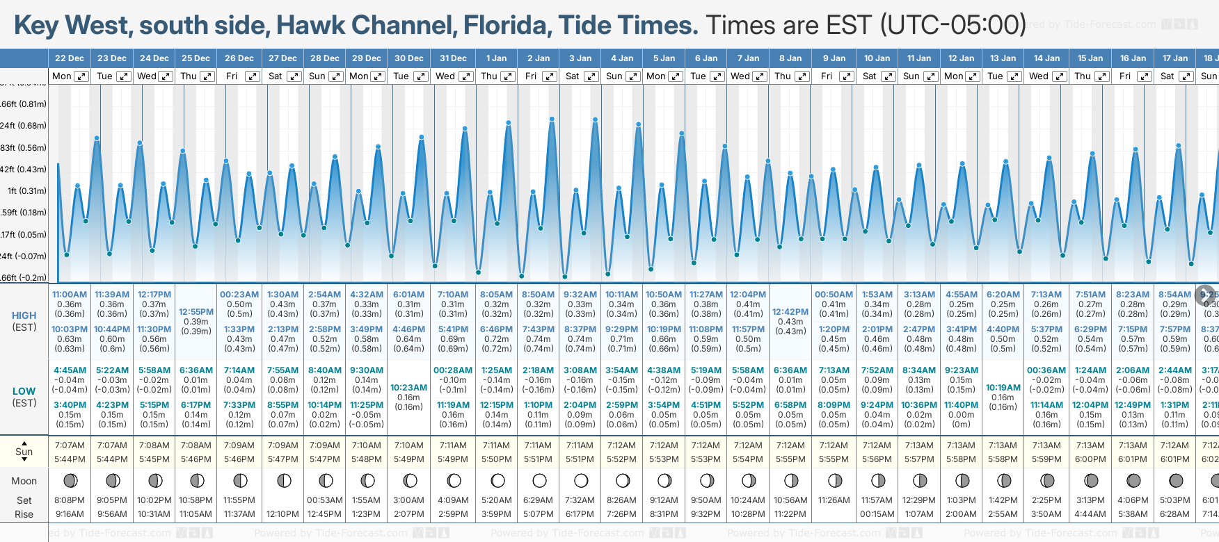 Today's tide times for Key West, south side, Hawk Channel: Monday 22 December 2025