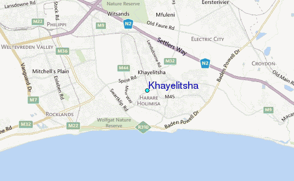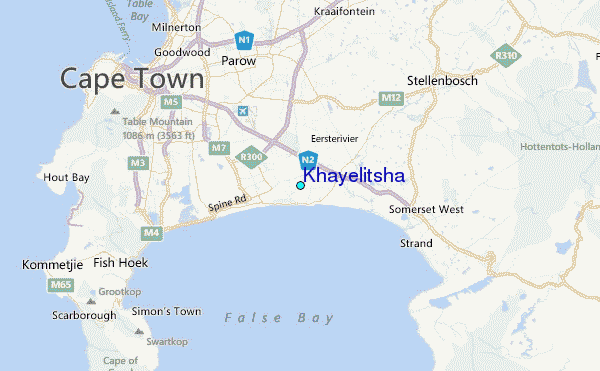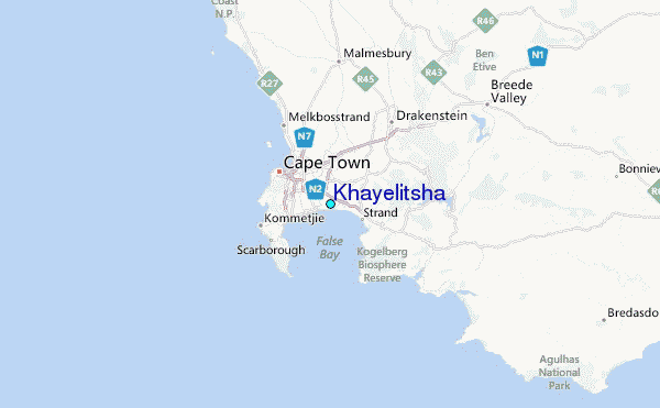 Use this relief map to navigate to tide stations, surf breaks and cities that are in the area of Khayelitsha.