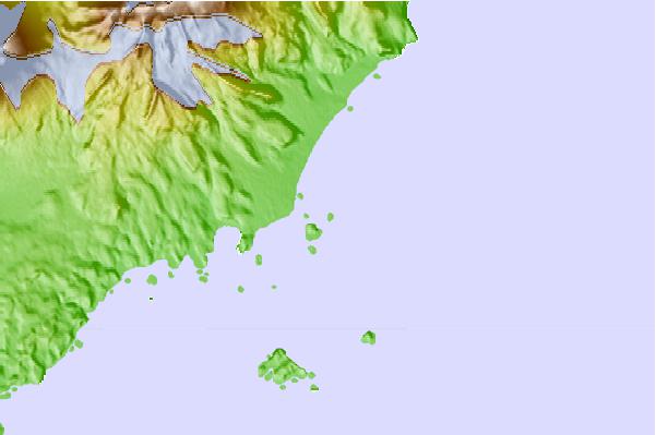 Use this relief map to navigate to tide stations, surf breaks and cities that are in the area of Kigul Island, Umnak Island, Alaska.