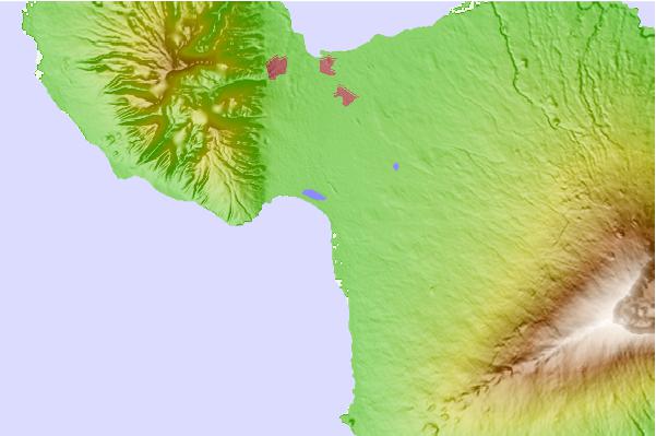 Use this relief map to navigate to tide stations, surf breaks and cities that are in the area of Kihei, Maui (Hawaii).