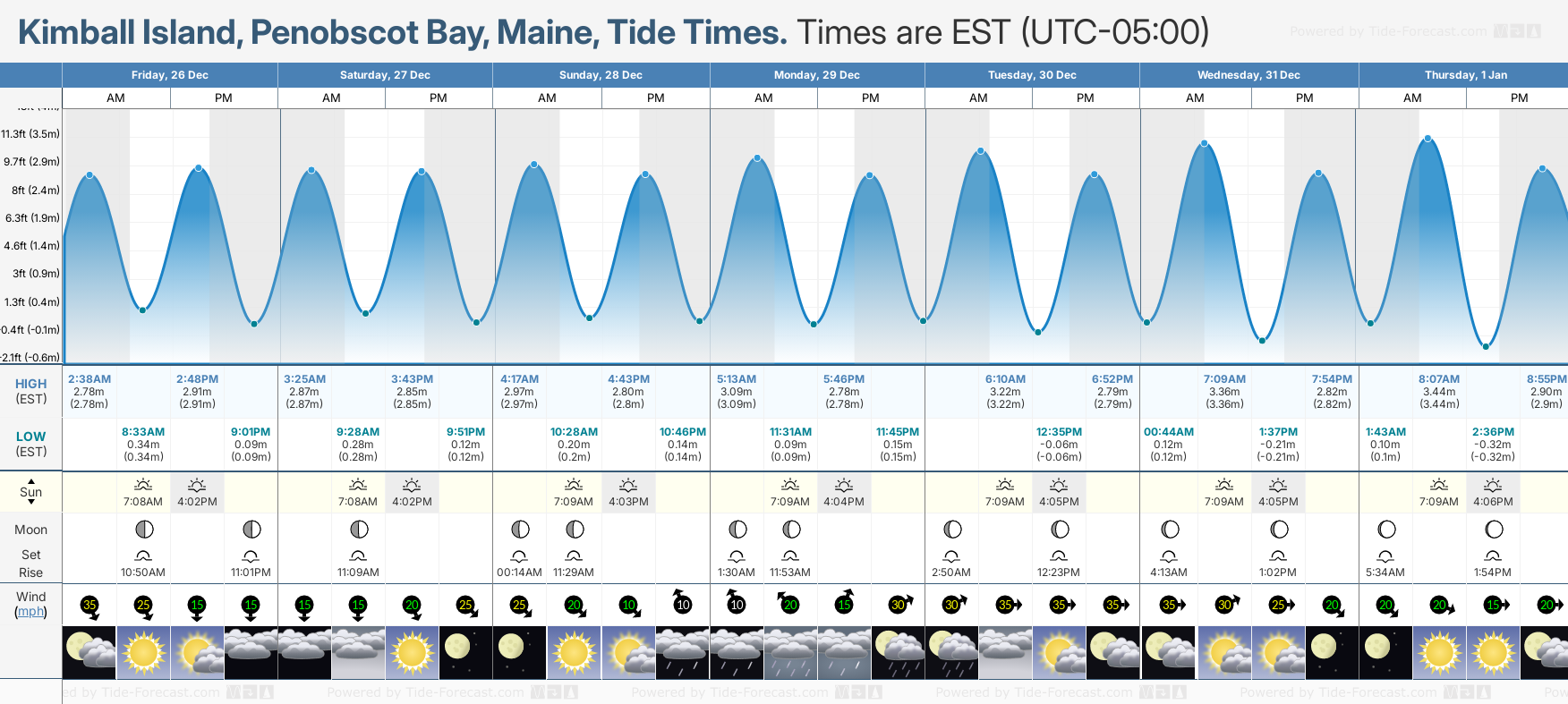 Tide Times for Kimball Island, Penobscot Bay (tomorrow): Friday 26 December 2025