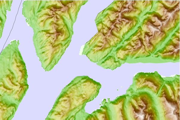 Use this relief map to navigate to tide stations, surf breaks and cities that are in the area of Kincolith, British Columbia.