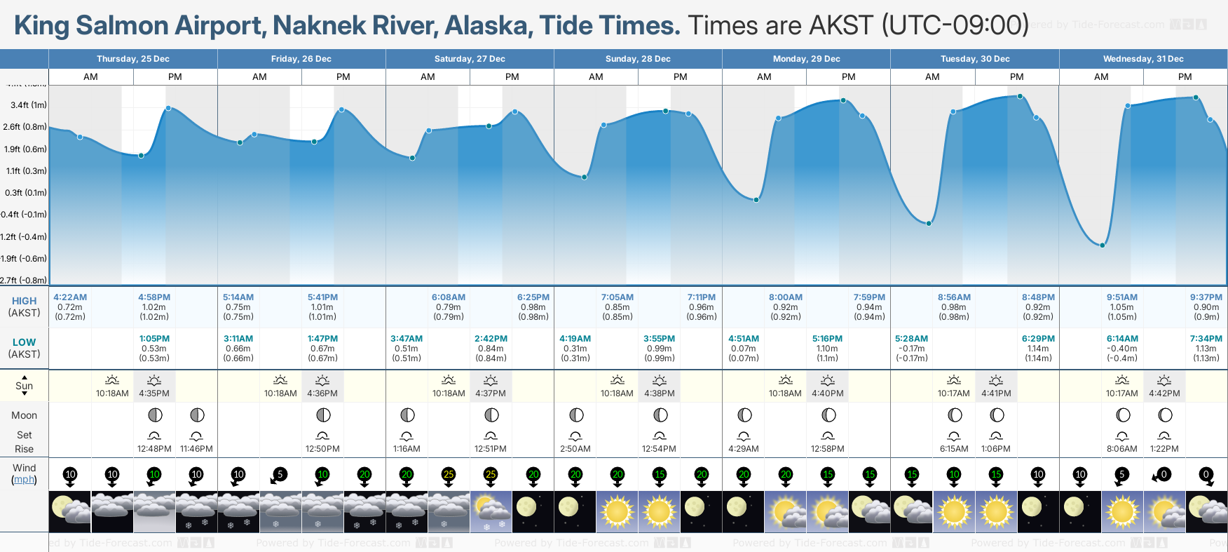 Today's tide times for King Salmon Airport, Naknek River: Thursday 25 December 2025