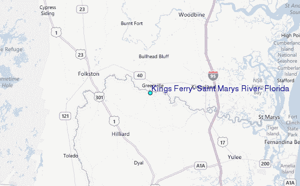 Use this relief map to navigate to tide stations, surf breaks and cities that are in the area of Kings Ferry, Saint Marys River, Florida.
