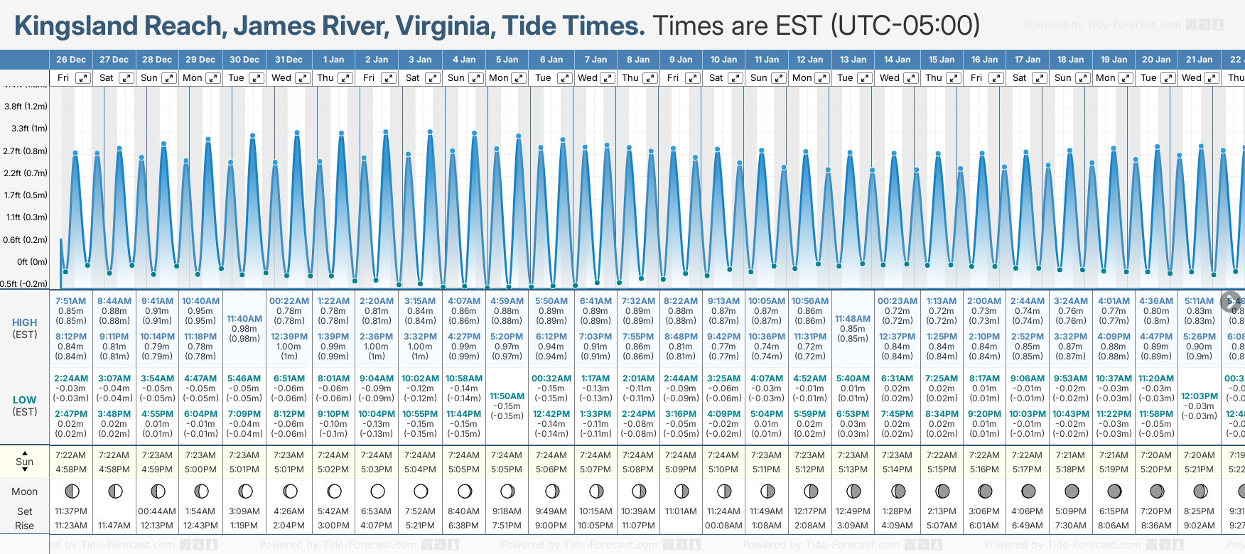 NOTE: Use of this site for Kingsland Reach, James River, Virginia tide times is subject to our terms.