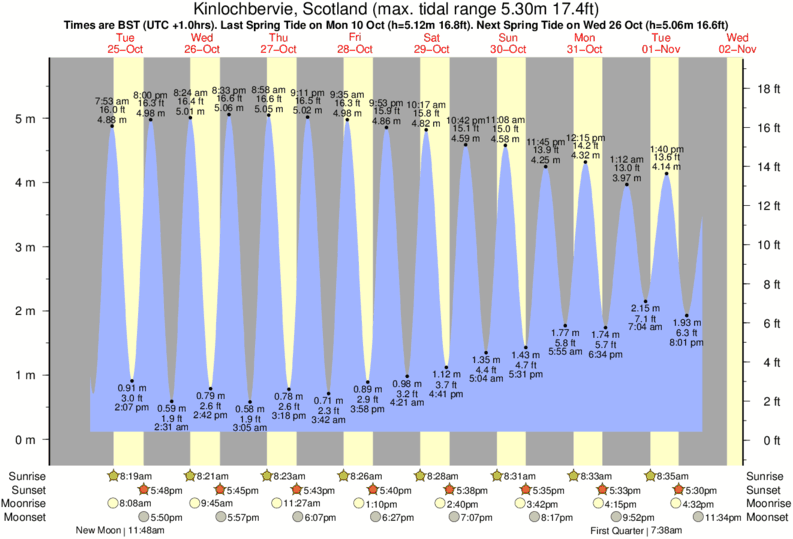 December and January Tide charts for Kinlochbervie: The tide charts below show the height, time and date of high and low tides for the next 30 days.