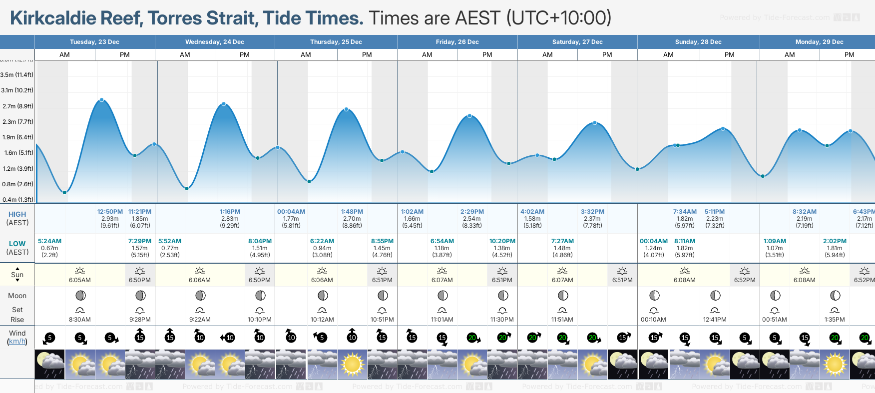 Tide Times for Kirkcaldie Reef (tomorrow): Wednesday 24 December 2025