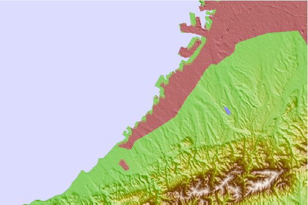 Use this relief map to navigate to tide stations, surf breaks and cities that are in the area of Kisiwada, Osaka, Japan.