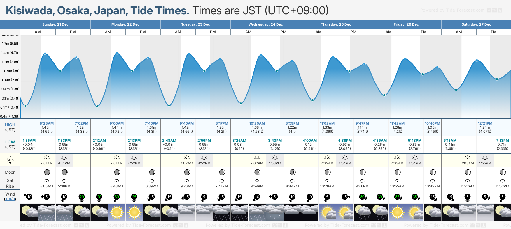 NOTE: Use of this site for Kisiwada, Osaka, Japan tide times is subject to our terms.