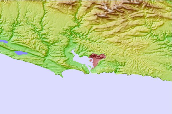 Use this relief map to navigate to tide stations, surf breaks and cities that are in the area of Knysna.
