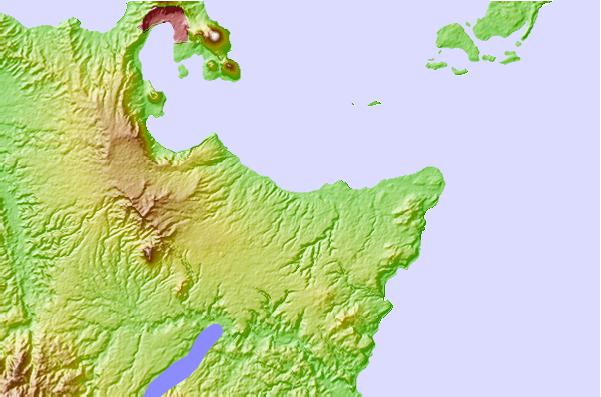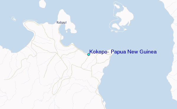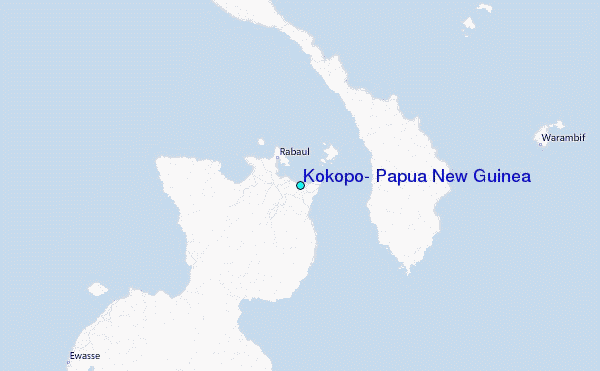 Use this relief map to navigate to tide stations, surf breaks and cities that are in the area of Kokopo, Papua New Guinea.