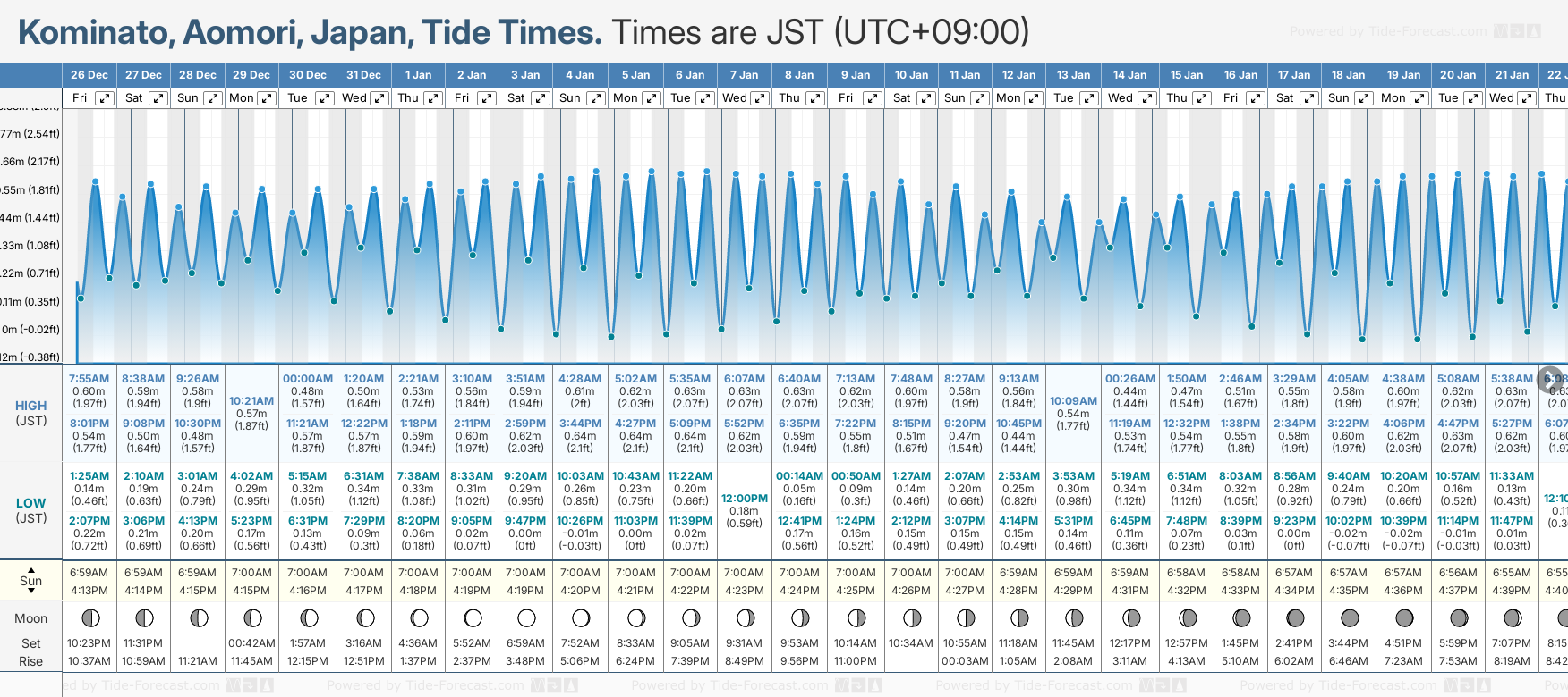 NOTE: Use of this site for Kominato, Aomori, Japan tide times is subject to our terms.