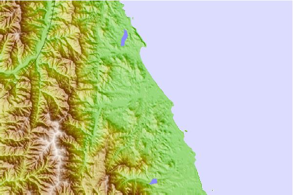 Use this relief map to navigate to tide stations, surf breaks and cities that are in the area of Kosong.