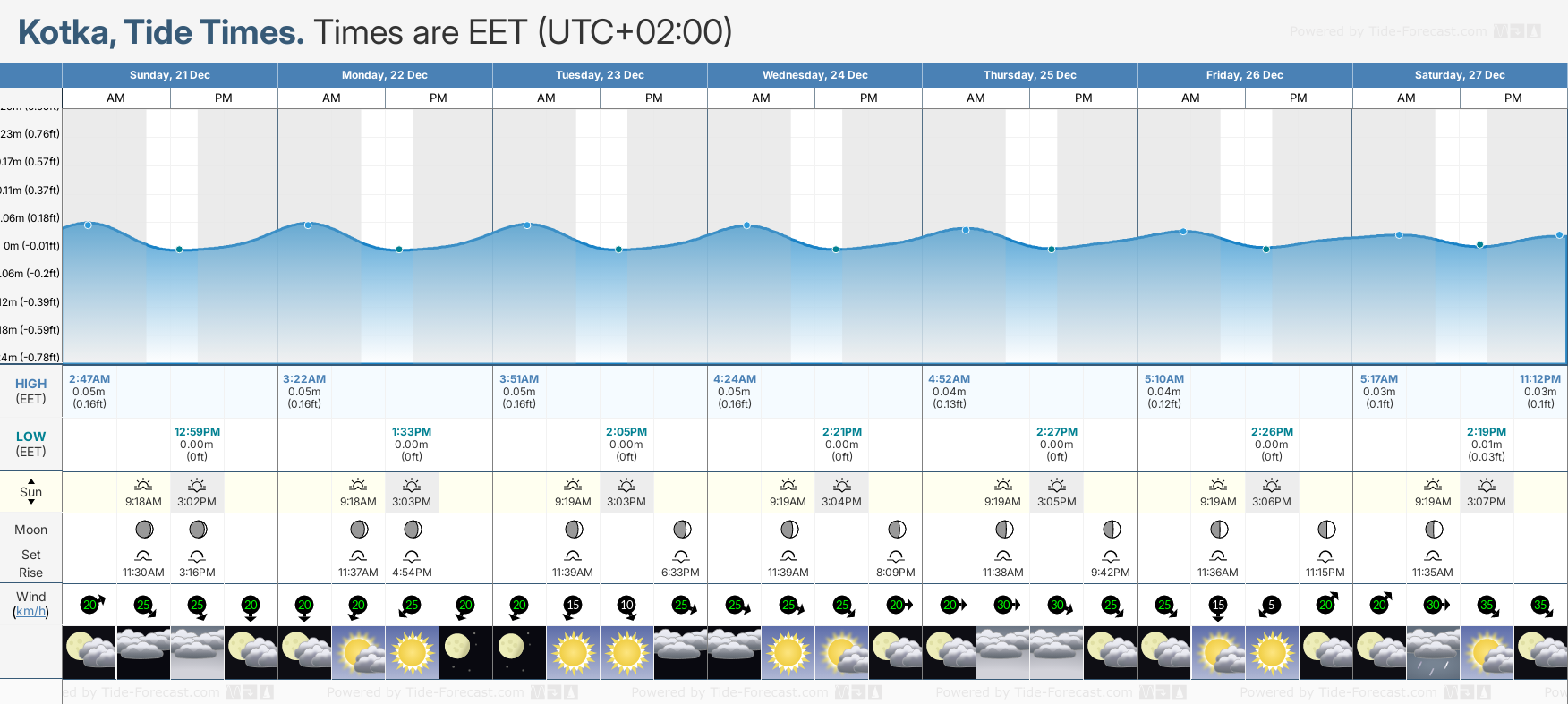 Tide Times for Kotka (tomorrow): Sunday 21 December 2025