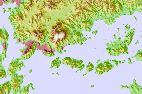Use this relief map to navigate to tide stations, surf breaks and cities that are in the area of Koyo, Hirosima, Japan.