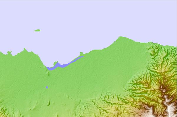 Use this relief map to navigate to tide stations, surf breaks and cities that are in the area of Kraksaan.