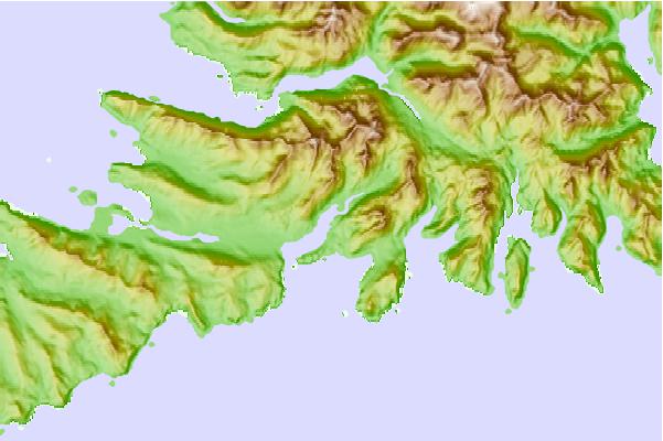 Use this relief map to navigate to tide stations, surf breaks and cities that are in the area of Kuliliak Bay, Unalaska Island, Alaska.