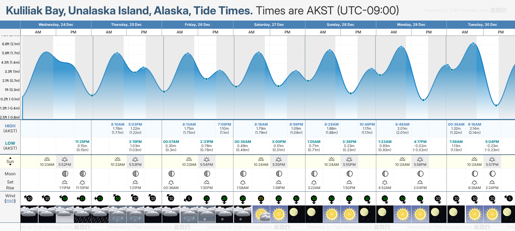 Today's tide times for Kuliliak Bay, Unalaska Island: Wednesday 24 December 2025