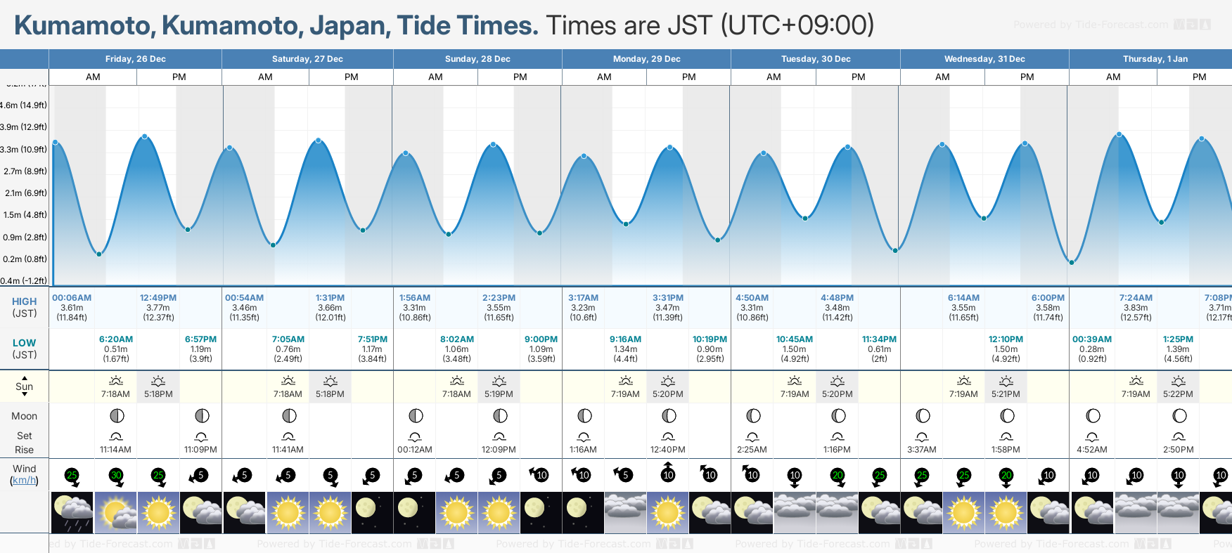 Tide Times for Kumamoto (tomorrow): Friday 26 December 2025