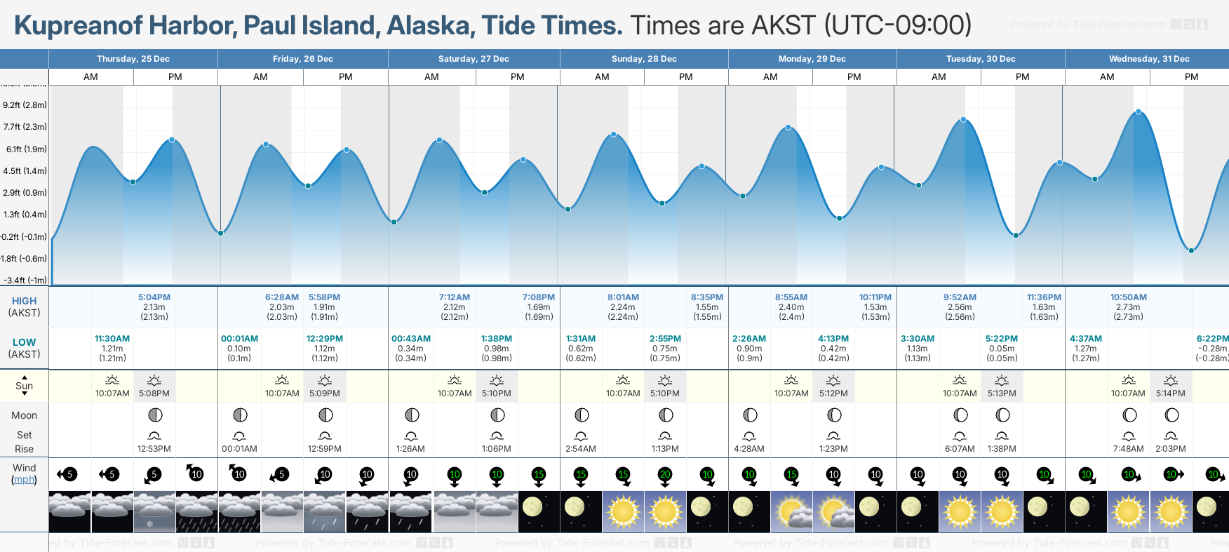 Tide Times for Kupreanof Harbor, Paul Island: Wednesday 31 December 2025