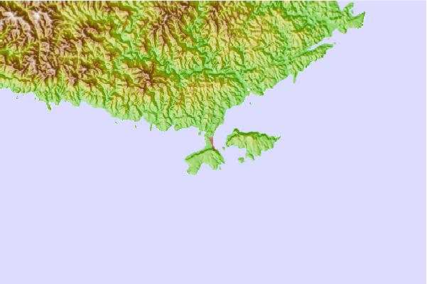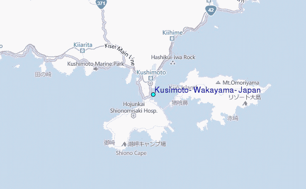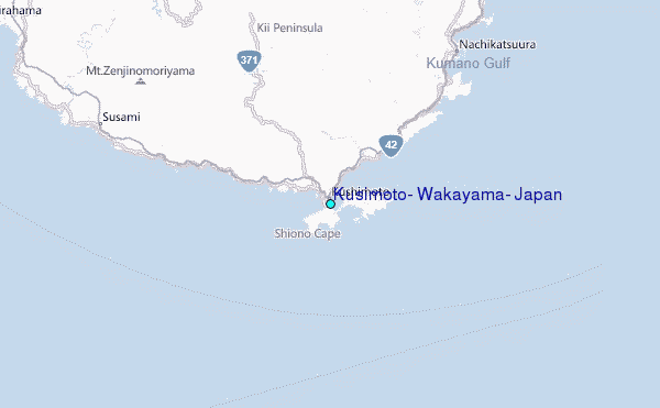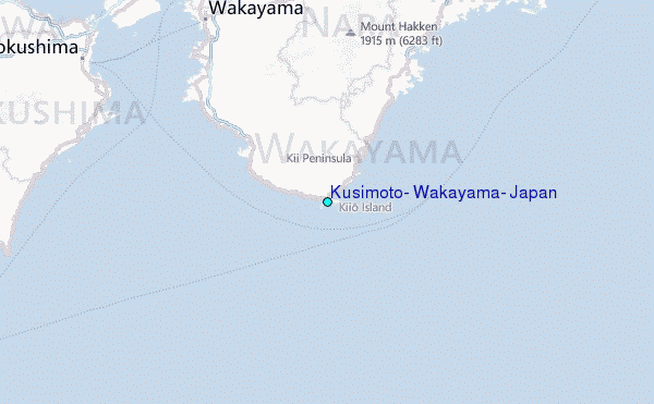 Use this relief map to navigate to tide stations, surf breaks and cities that are in the area of Kusimoto, Wakayama, Japan.