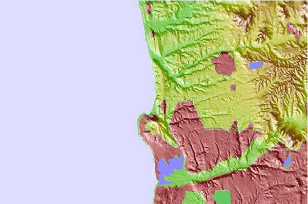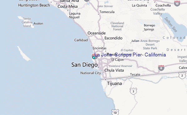 Use this relief map to navigate to tide stations, surf breaks and cities that are in the area of La Jolla, Scripps Pier, California.