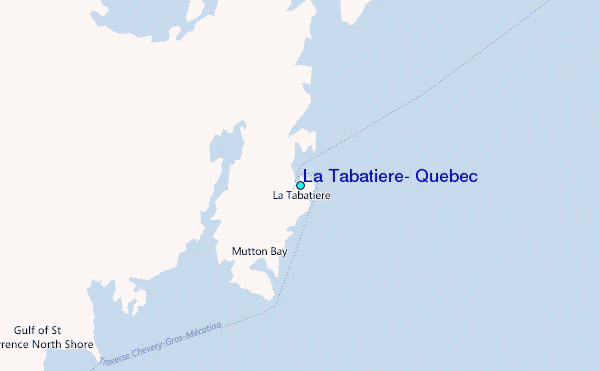 Use this relief map to navigate to tide stations, surf breaks and cities that are in the area of La Tabatiere, Quebec.