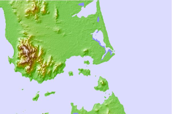 Use this relief map to navigate to tide stations, surf breaks and cities that are in the area of Lady Barron Harbour, Tasmania.