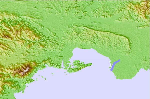 Use this relief map to navigate to tide stations, surf breaks and cities that are in the area of Lahad Datu.