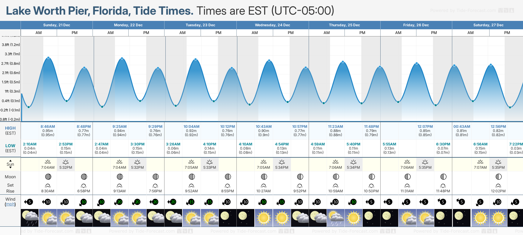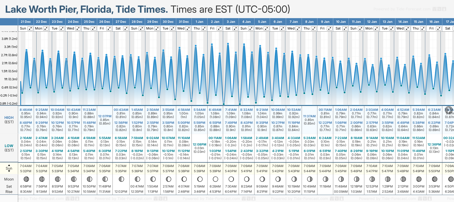 December and January Tide charts for Lake Worth Corridor: The tide charts below show the height, time and date of high and low tides for the next 30 days.