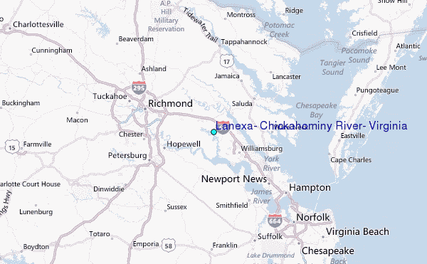Use this relief map to navigate to tide stations, surf breaks and cities that are in the area of Lanexa, Chickahominy River, Virginia.