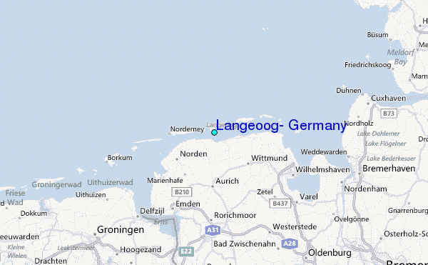 Use this relief map to navigate to tide stations, surf breaks and cities that are in the area of Langeoog, Germany.