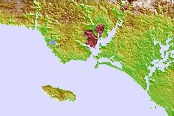 Use this relief map to navigate to tide stations, surf breaks and cities that are in the area of Larmor-Plage.